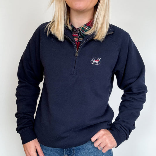 Embroidered Christmas Zip Neck Sweat - Choose Your Breed - Navy