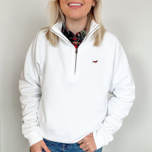 Embroidered Christmas Zip Neck Sweat - Choose Your Breed - White