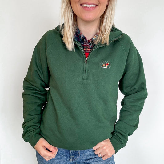 Embroidered Christmas Zip Neck Sweat - Choose Your Breed - Forest Green