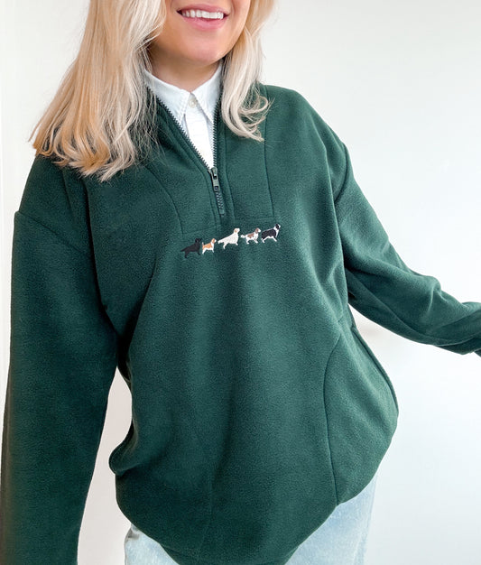 Embroidered Oversized Outdoor Zip Neck Fleece - Working Breed - Forest Green