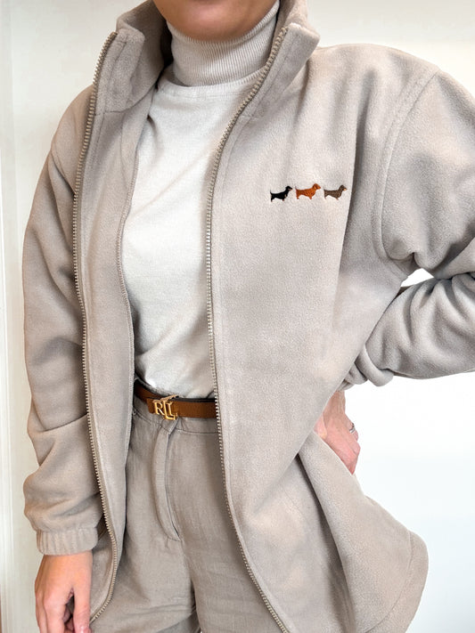 Embroidered Oversized Outdoor Full Zip Fleece - Dachshunds