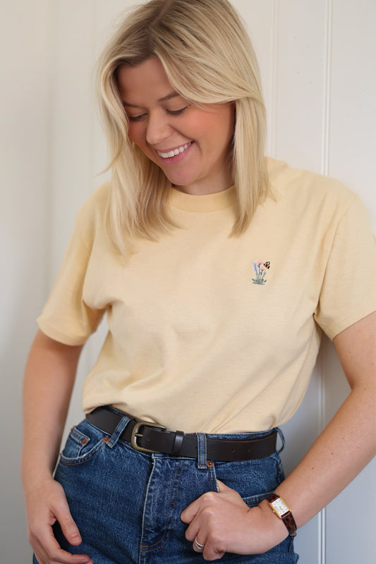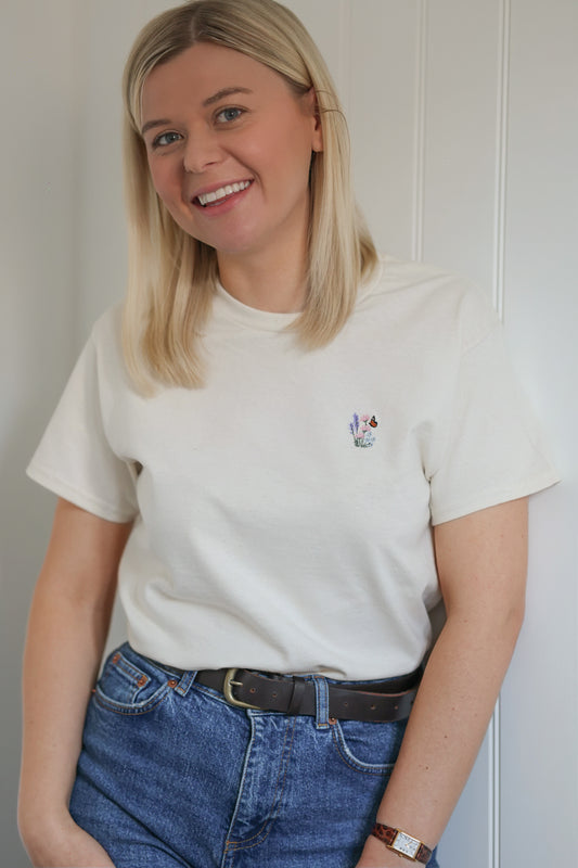 Embroidered AP T-Shirt - Bumbles & Butterflies - Natural