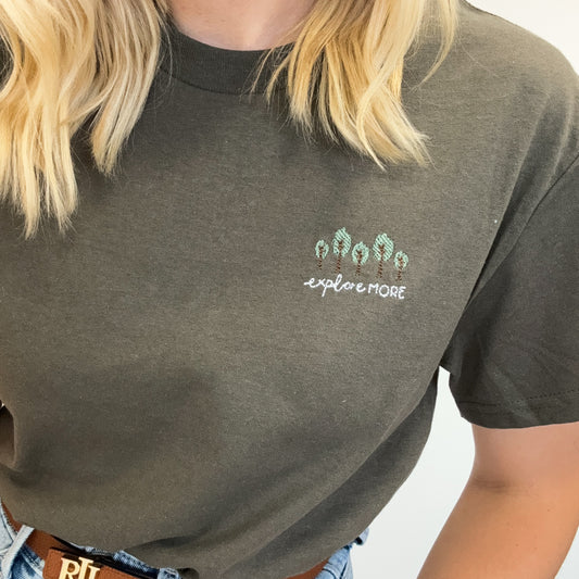Embroidered AP T-Shirt - Explore More - Olive Green