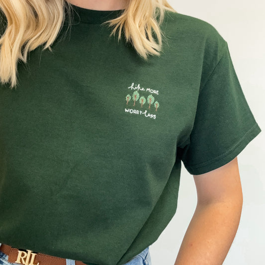 Embroidered AP T-Shirt - Hike More, Worry Less - Forest Green