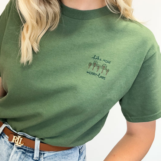 Embroidered AP T-Shirt - Hike More, Worry Less - Deep Sage