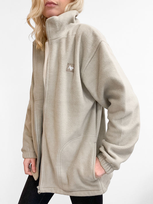 Embroidered Oversized Outdoor Full Zip Fleece - Fawn Frost