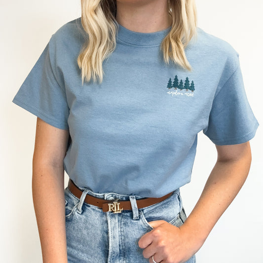 Embroidered AP T-Shirt - Explore More - Stone Blue