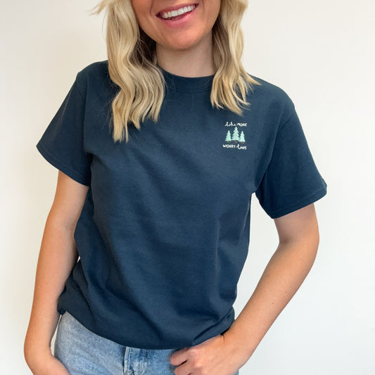 Embroidered AP T-Shirt - Hike More, Worry Less - Blue Dusk