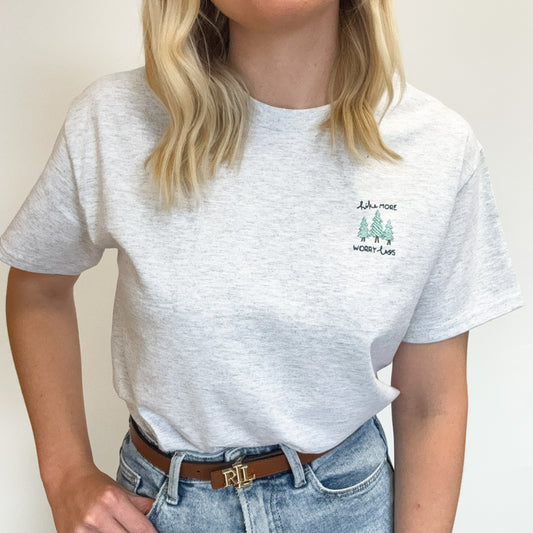 Embroidered AP T-Shirt - Hike More, Worry Less - Ash Grey