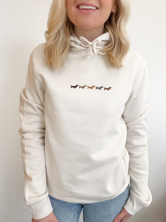 Embroidered Organic Hoodie - Dachshunds - Ecru