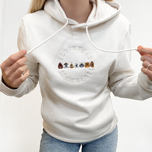 Embroidered Organic Hoodie - Ecru - I Love Dogs
