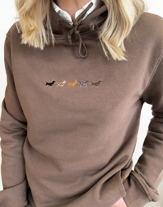 Embroidered Organic Hoodie - Dachshunds - Mocha