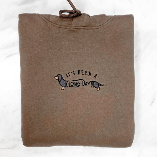 Embroidered Organic Hoodie - 'It's been a long day' - Mocha