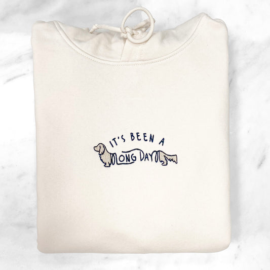 Embroidered Organic Hoodie - 'It's been a long day' - Ecru