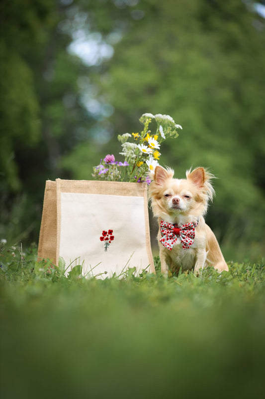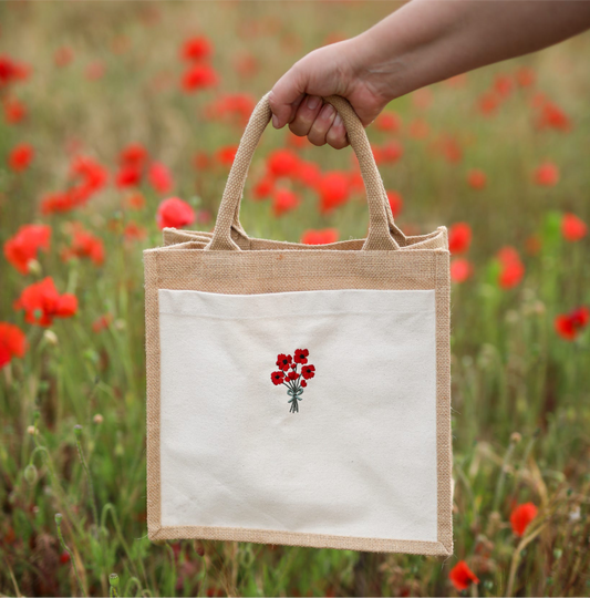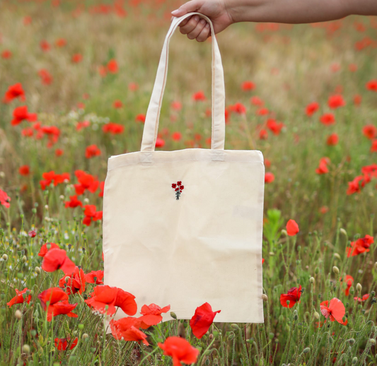 Embroidered Cotton Pocket Shopper Bag - Painted Poppies
