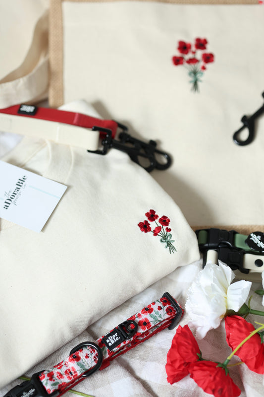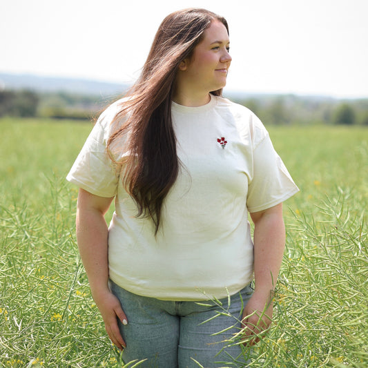 Embroidered AP T-Shirt - Painted Poppies - Natural