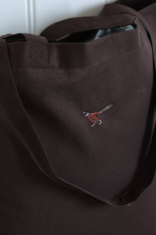 Embroidered Tote Bag - Farmland Pheasant - Chocolate