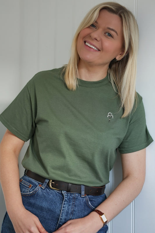 Embroidered AP T-Shirt - Forest Of Ferns - Deep Sage