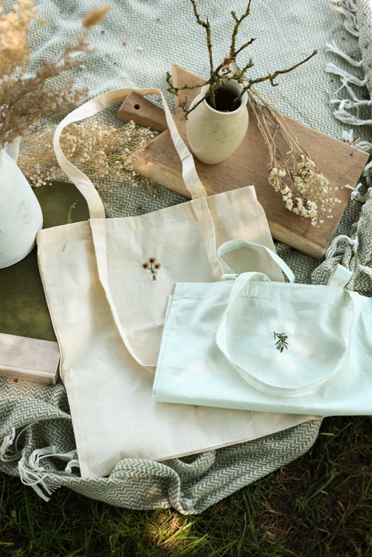 Embroidered Tote Bag - Olive Grove