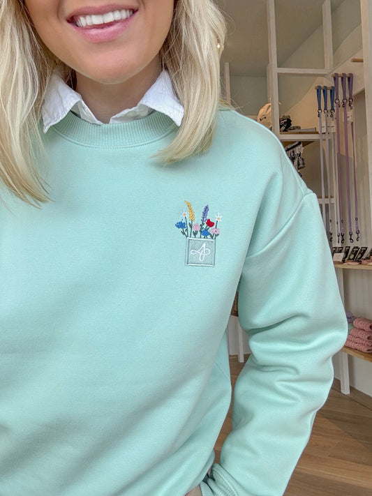 Embroidered Premium Oversized Sweatshirt - Wildflower Meadow - Fresh Mint