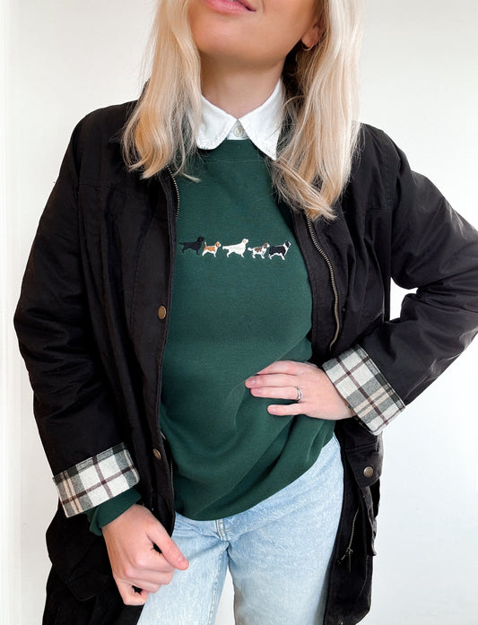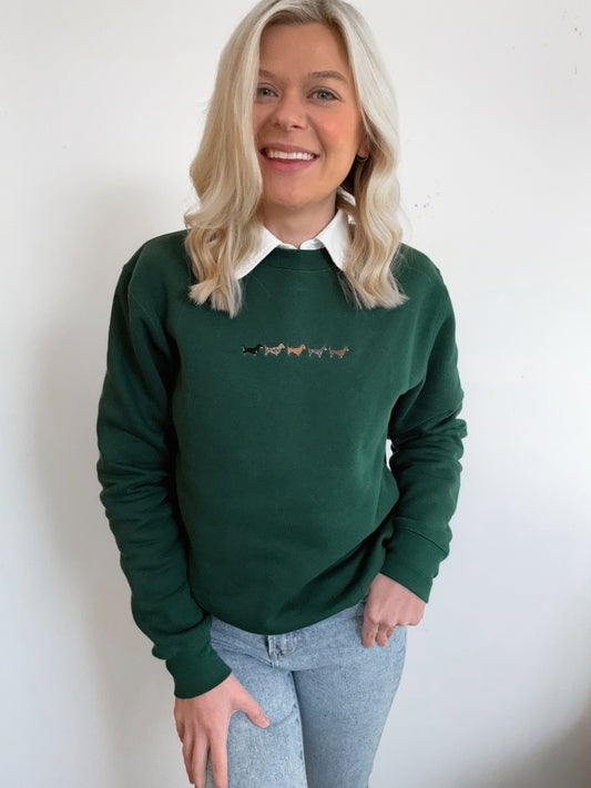 Embroidered Signature Sweatshirt - Dachshunds - Forest Green