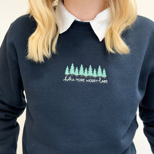 Embroidered Signature Sweatshirt - Hike More, Worry Less - Navy