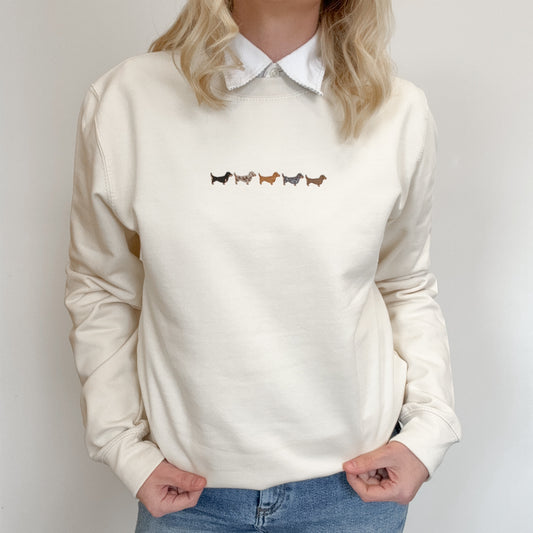 Embroidered Lightweight Sweatshirt - Dachshunds - Vanilla