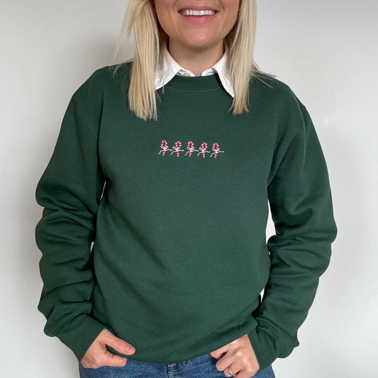 Embroidered Signature Sweatshirt - Candy Cane - Forest Green
