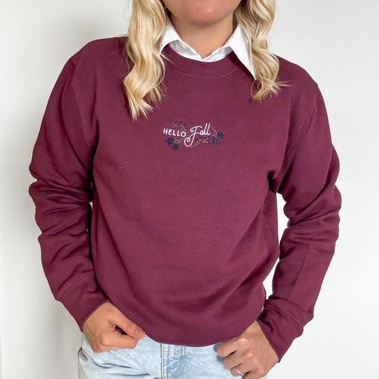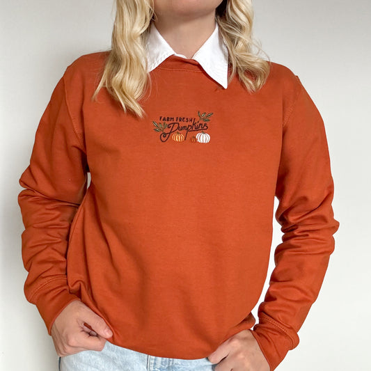 Embroidered Lightweight Sweatshirt - Pumpkin Harvest - Burnt Orange