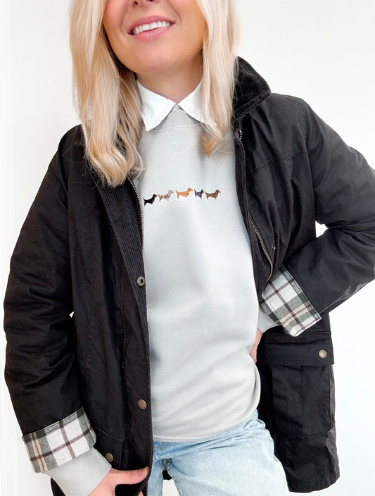 Embroidered Signature Sweatshirt - Dachshunds - Grey