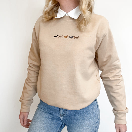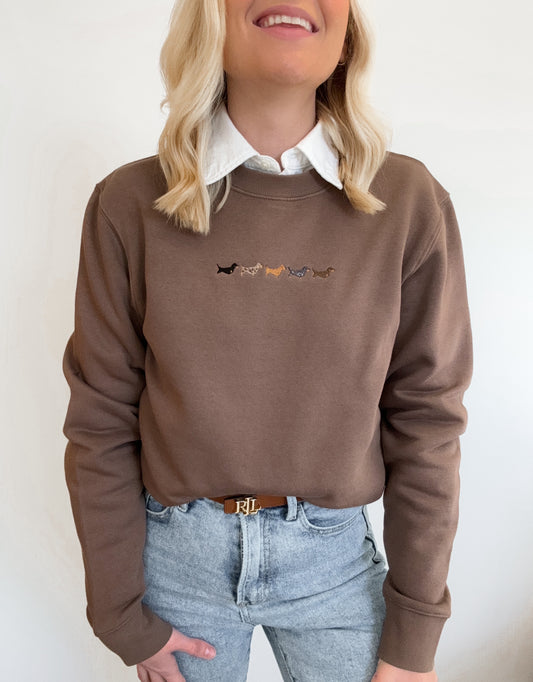 Embroidered Signature Sweatshirt - Dachshunds - Mocha