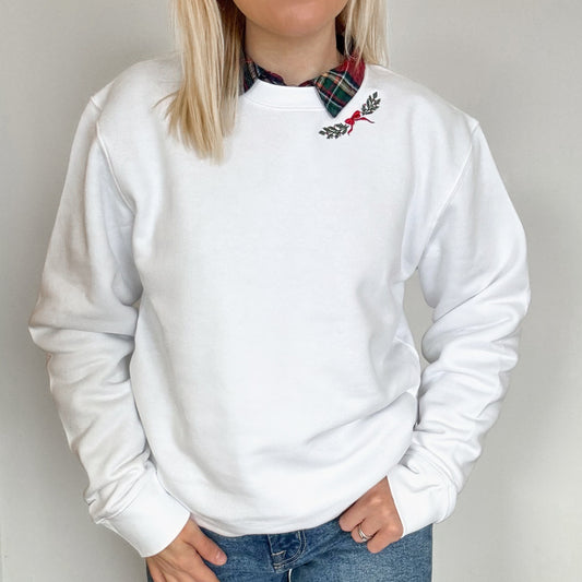 Embroidered Signature Sweatshirt - Garlands Of Evergreen - White