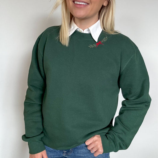 Embroidered Signature Sweatshirt - Garlands Of Evergreen - Forest Green