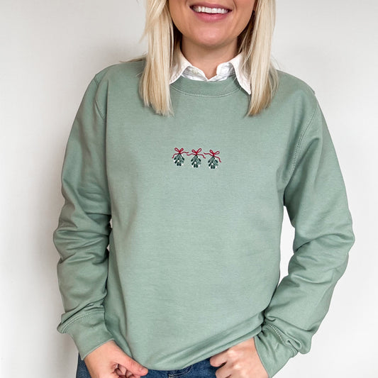 Embroidered Lightweight Sweatshirt - Christmas Traditions - Sage