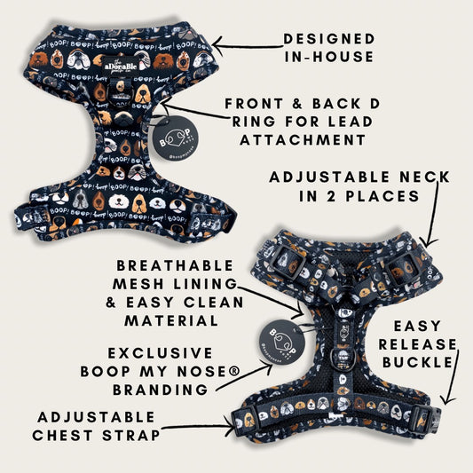 Adjustable Harness - The aDoraBle Pooch Co x Boop My Nose - Boop! - Black
