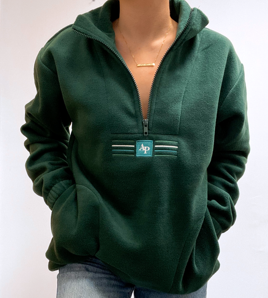 Embroidered Oversized Outdoor Zip Neck Fleece - Woodland Walks - Forest Green