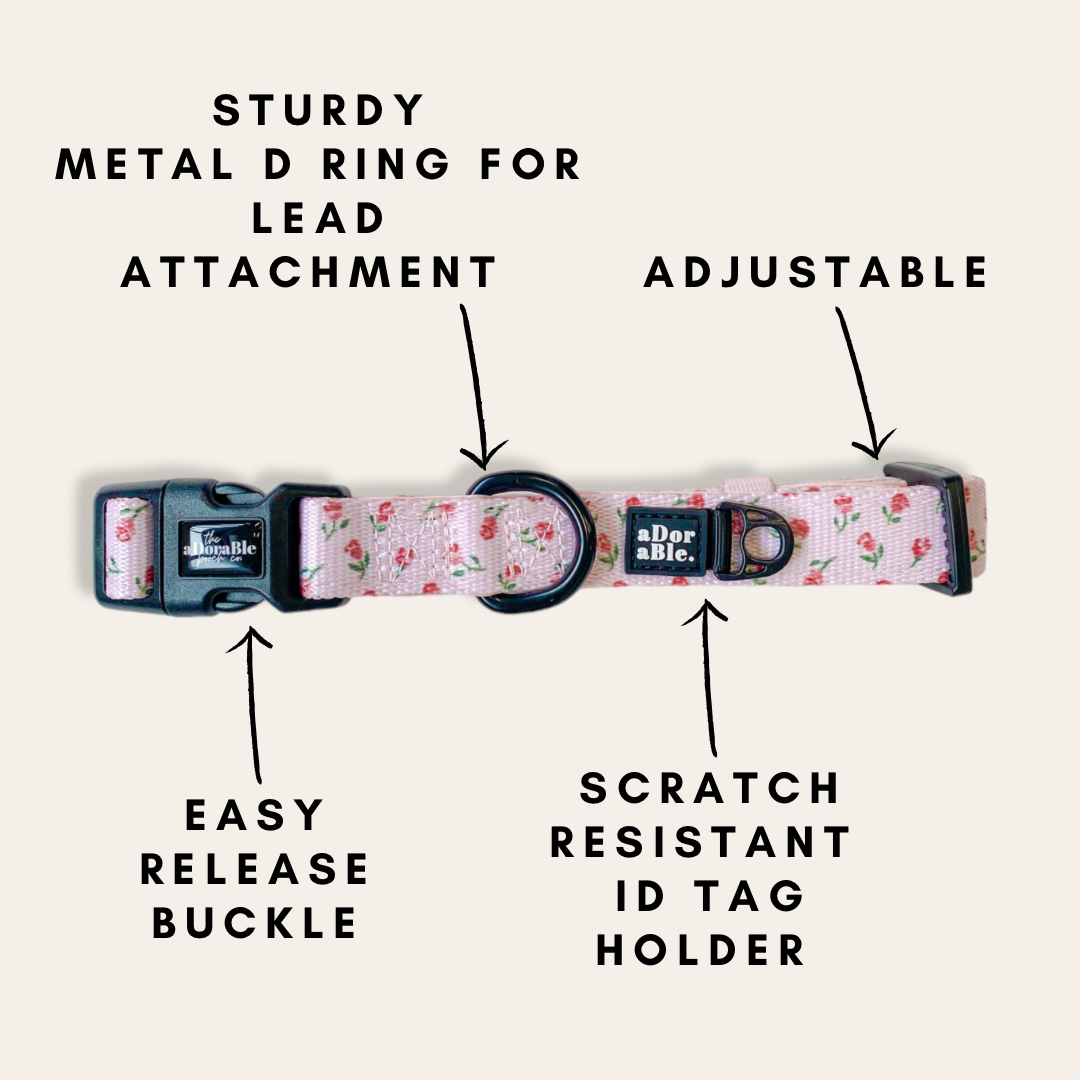 This beautiful collection features tiny pink roses on a soft-pink background. Stylish, classy and subtle, our English Rose collection is perfect for summer walks with your adorable pooch.