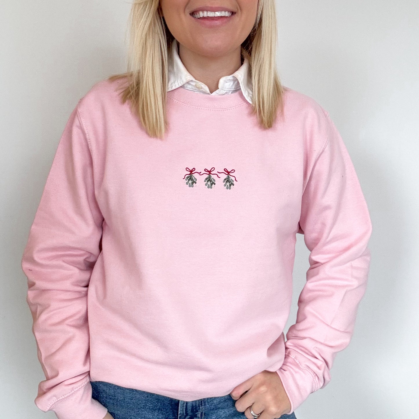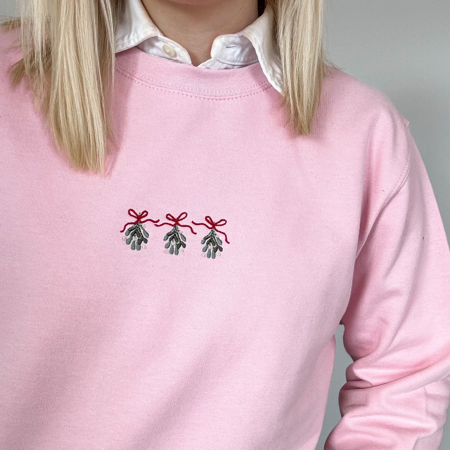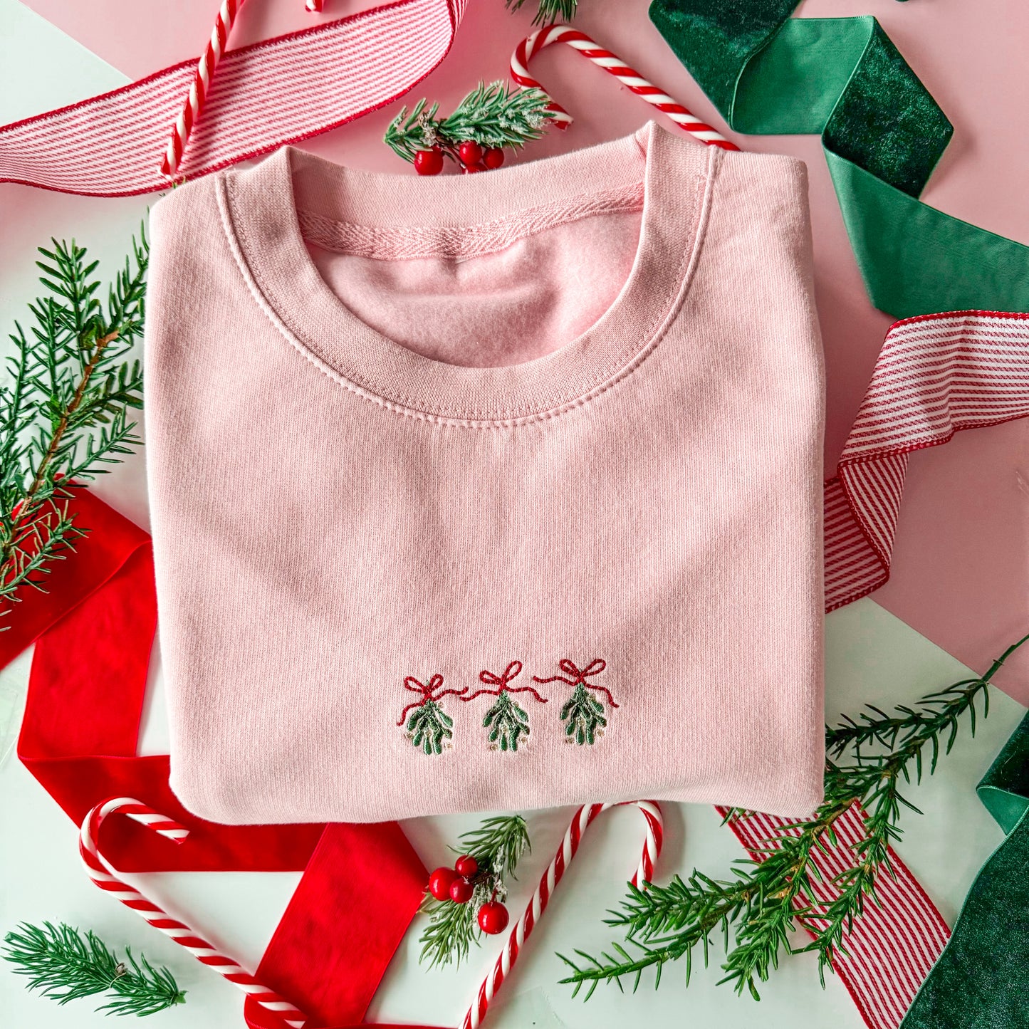 Embroidered Lightweight Sweatshirt - Christmas Traditions - Light Pink