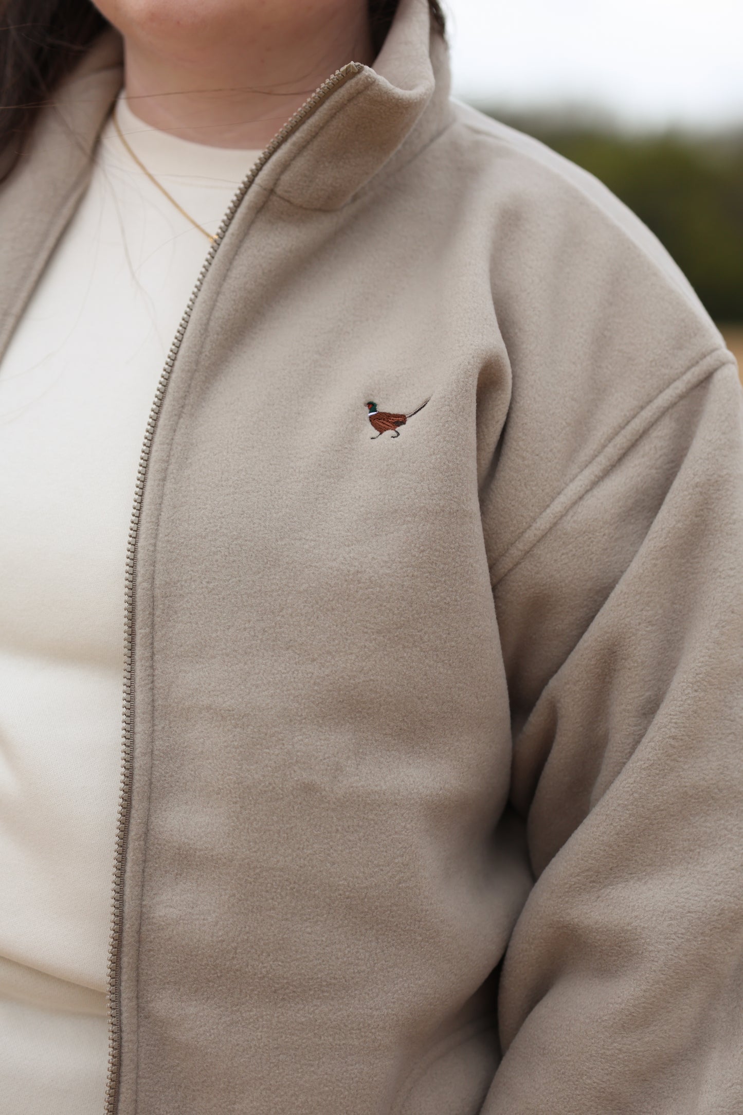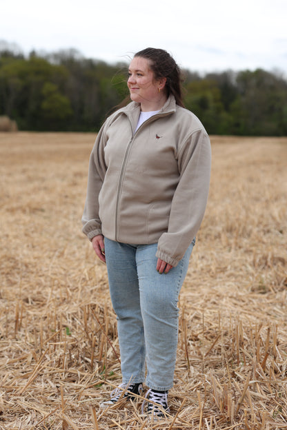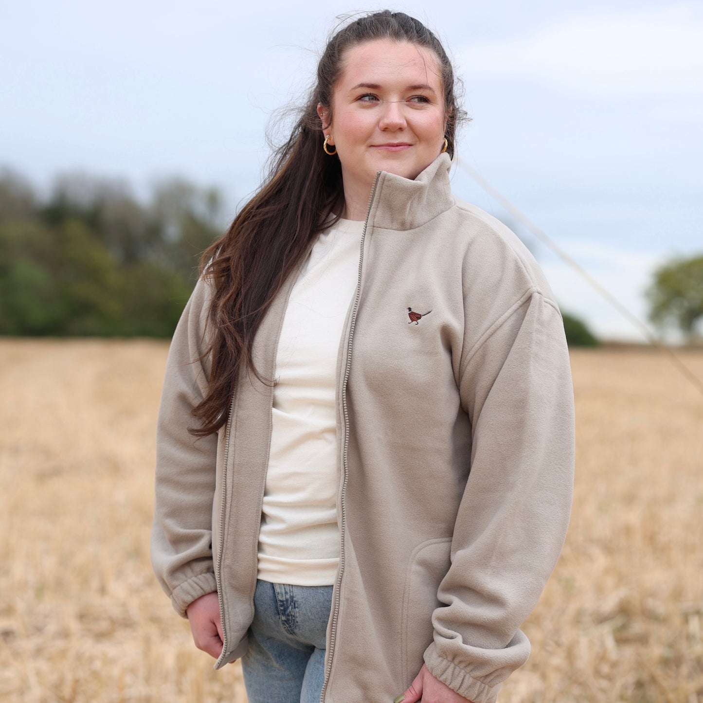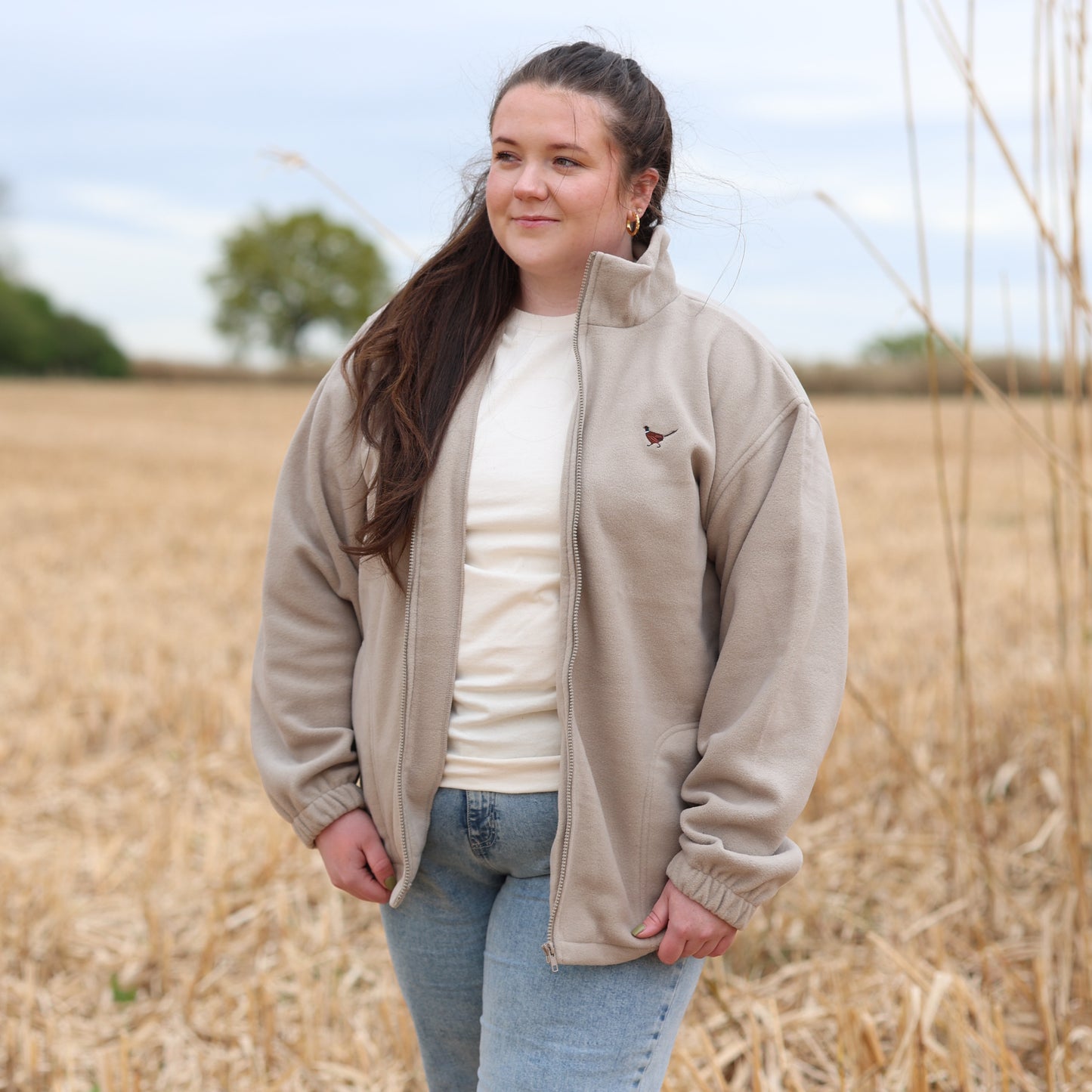 A stylish casual / oversized fit full zip fleece made from premium cosy fabric. A simple and easy to wear fleece. Our fleeces are professionally embroidered in house. High quality embroidery set on a gorgeous natural colour, these fleeces match perfectly with our 'Farmland Pheasant' collection!