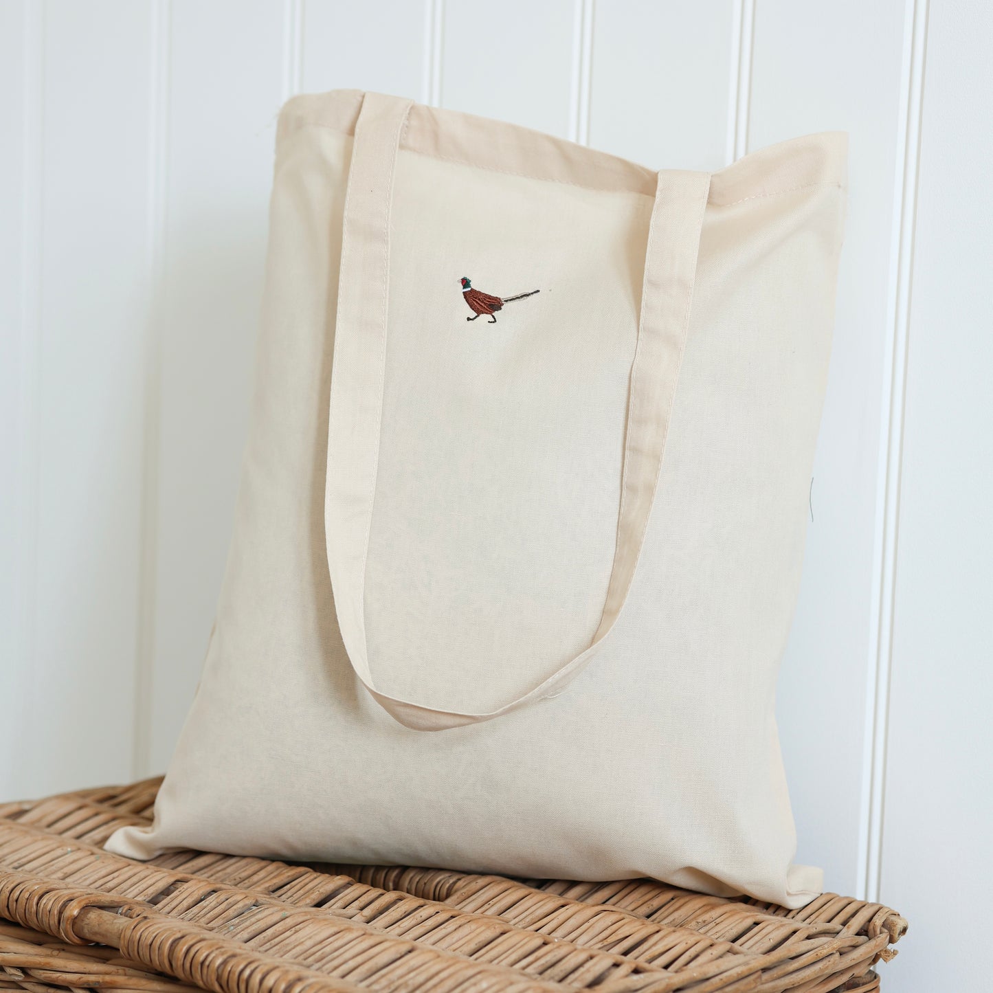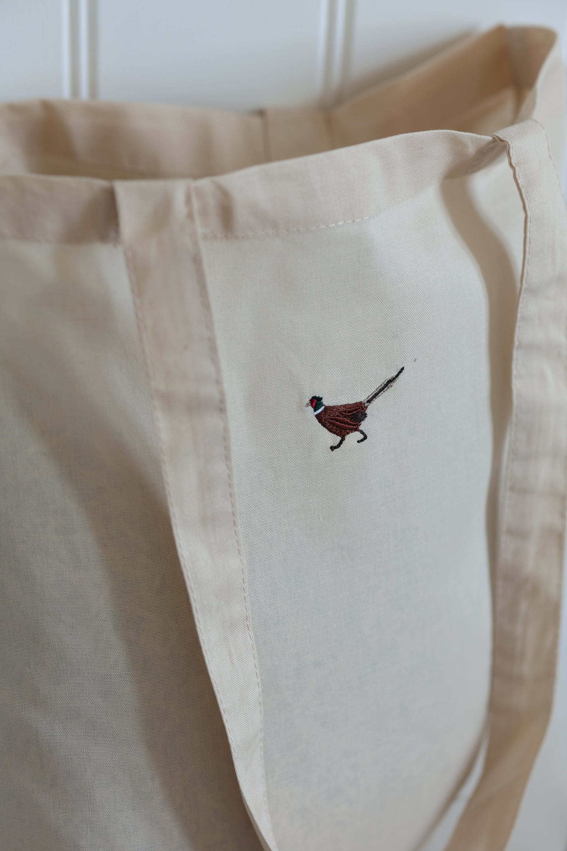 Embroidered Tote Bag - Farmland Pheasant - Sand