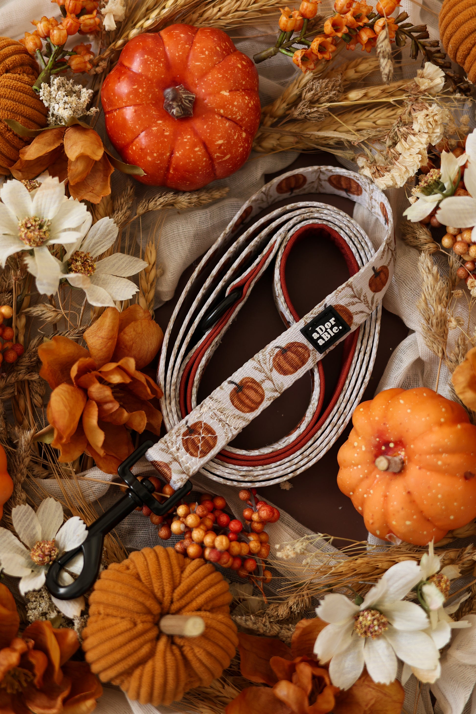 Set against a soft beige backdrop, the design subtly layers intertwining wheat filled with deep orange pumpkins and is finished with rich, rusty orange straps that make the pumpkins come to life. Unisex, timeless and designed to be worn across every season.