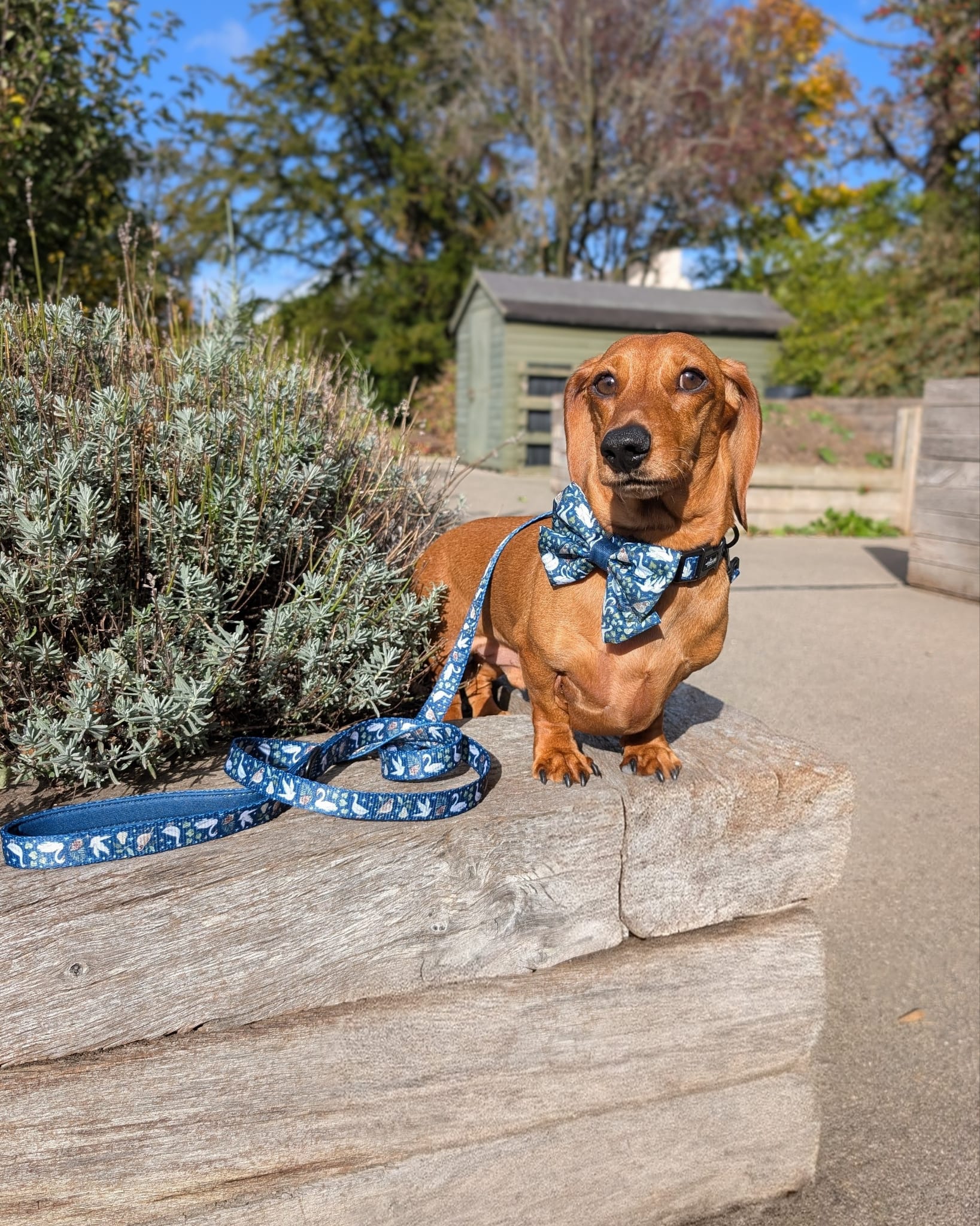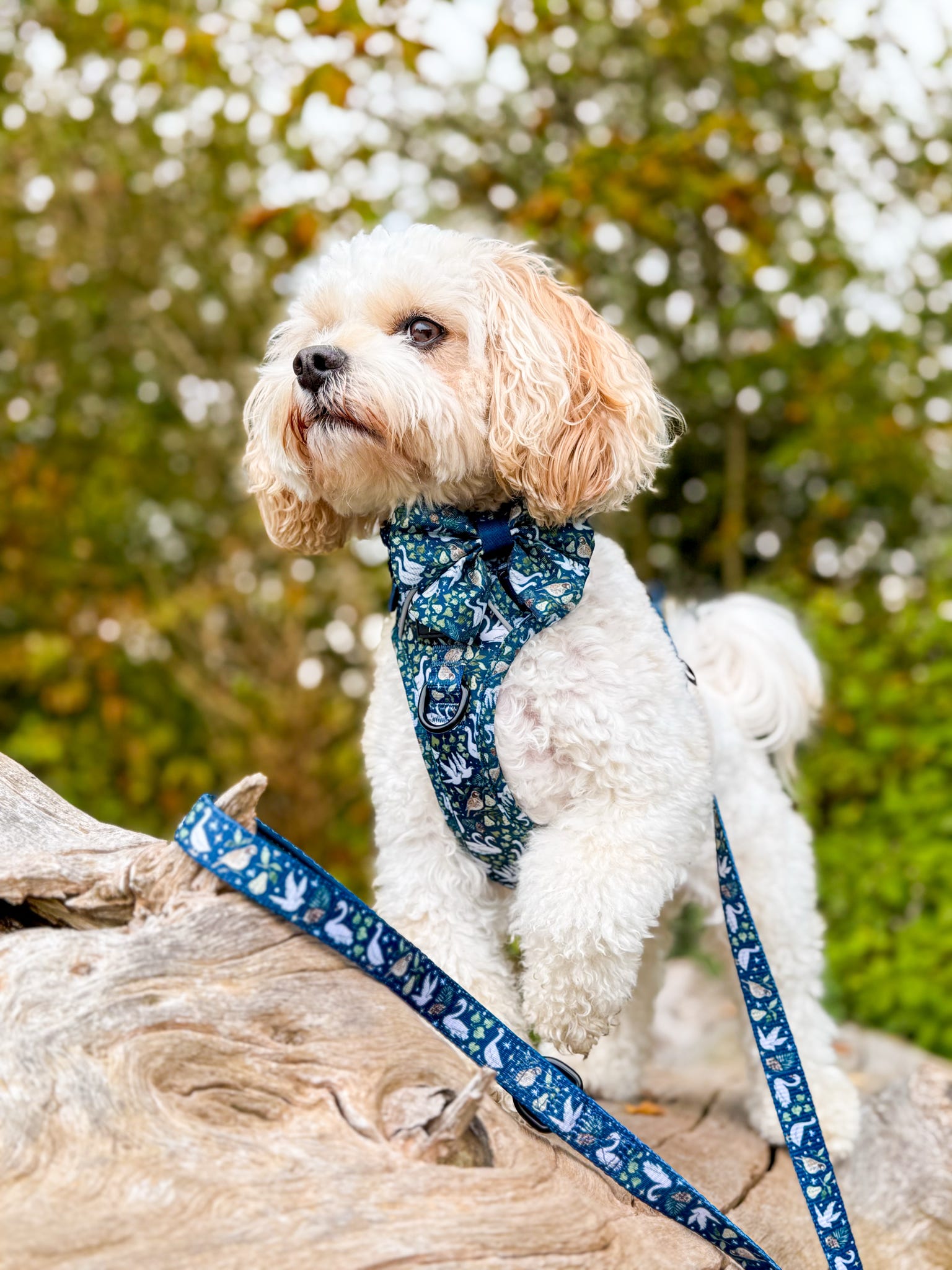 - Get the full set with our matching harness, collar, bow tie and poop bag holder!